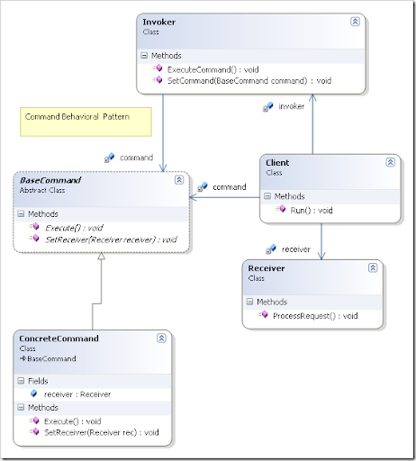 Command Patterns helps encapculating/mapping a request to object called command. All commands are derived from base command which has mainly two methods Execute & UnExecute. The commands forwards the request data to Receiver for further processing.